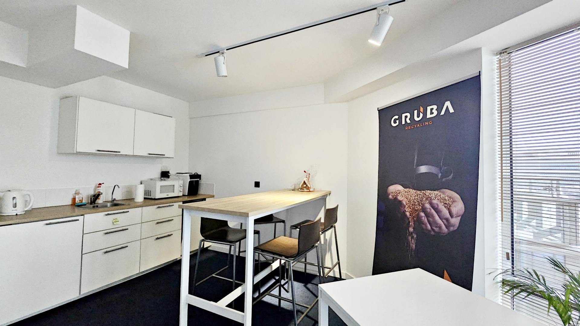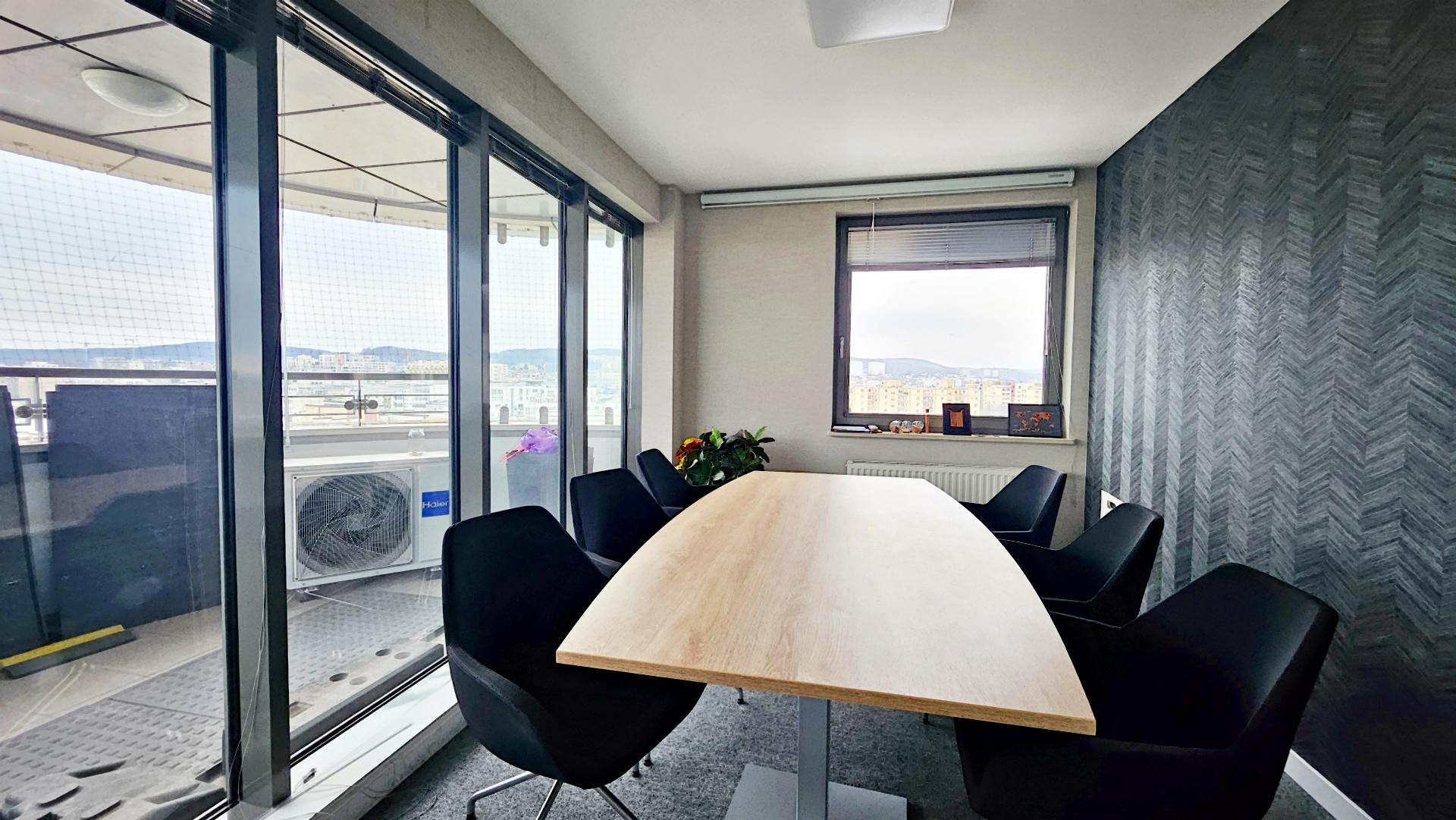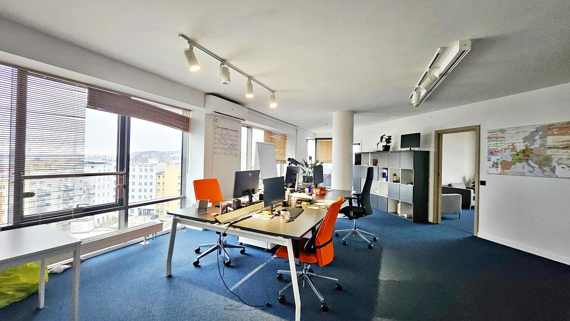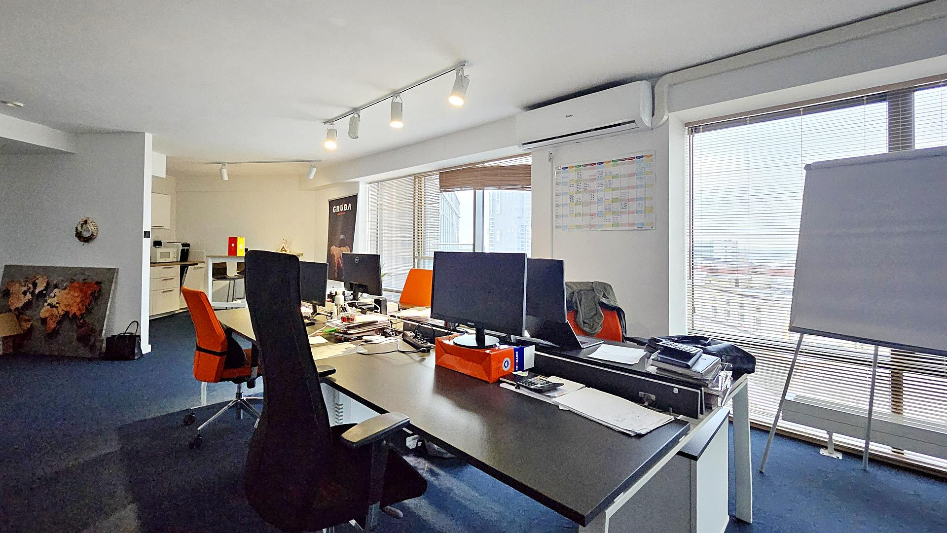 Lokal składa się z przeszklonej, reprezentacyjnej powierzchni open space z wyjściem na widokowy taras, dwóch gabinetów, salki konferencyjnej, aneksu kuchennego i toalety.