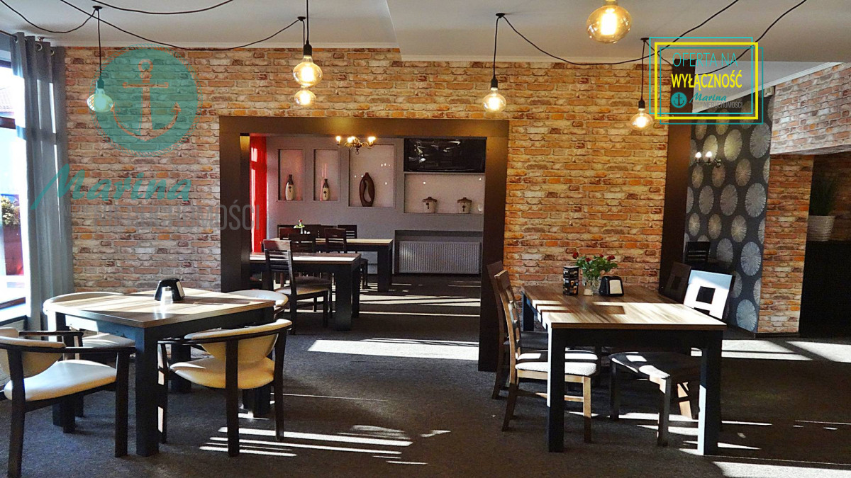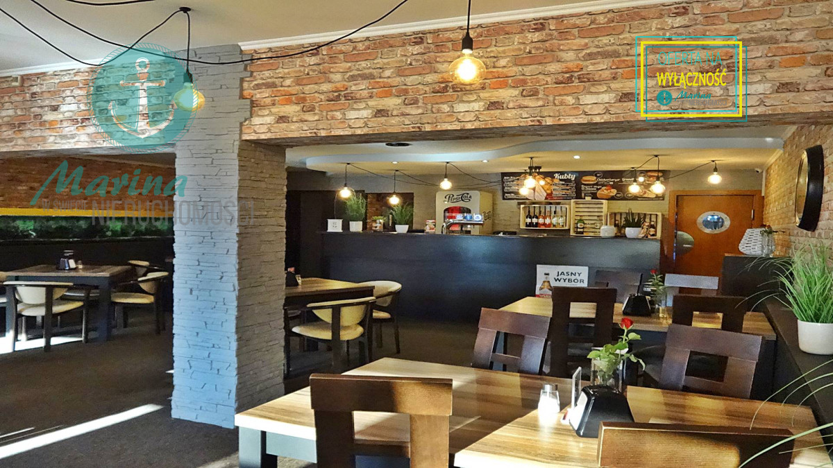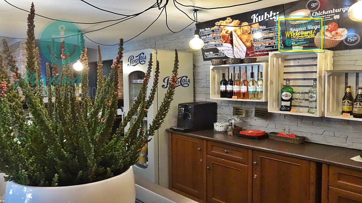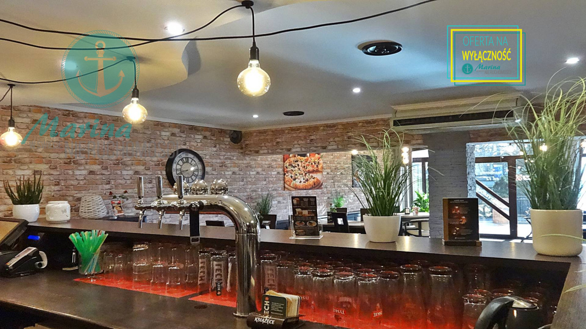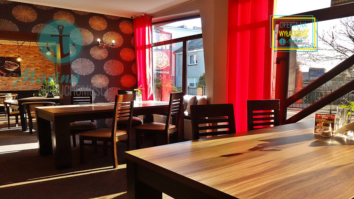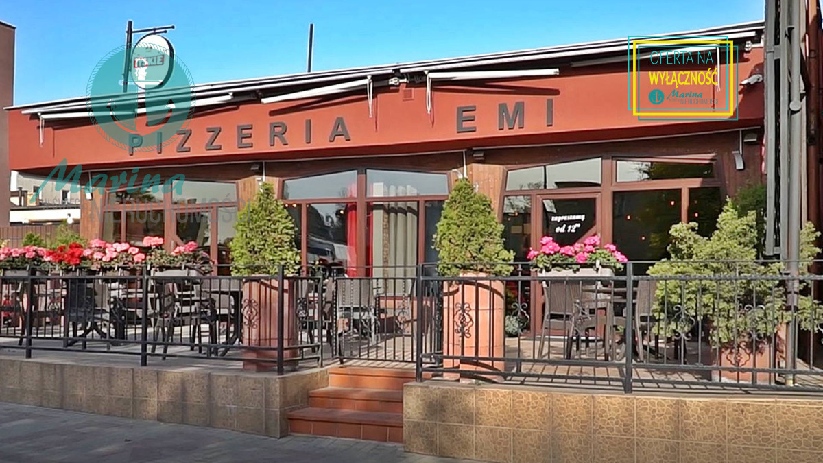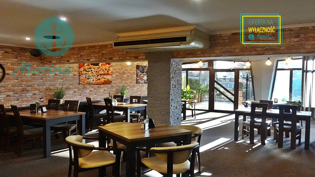 klimatyzowana, wyposażona i działająca restauracja z przeszklonym wejściem bezpośrednio z ulicy, z dużą witryną oraz  z 60-metrowym letnim ogródkiem, mogąca jednocześnie obsłużyć 60-100  gości.