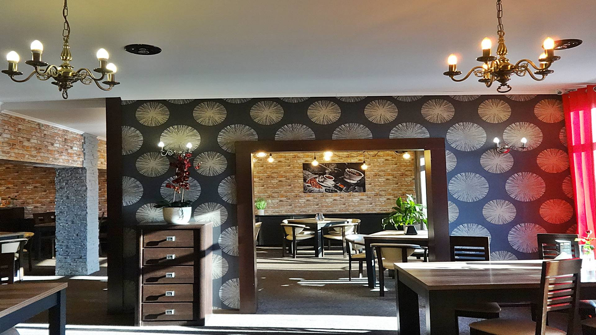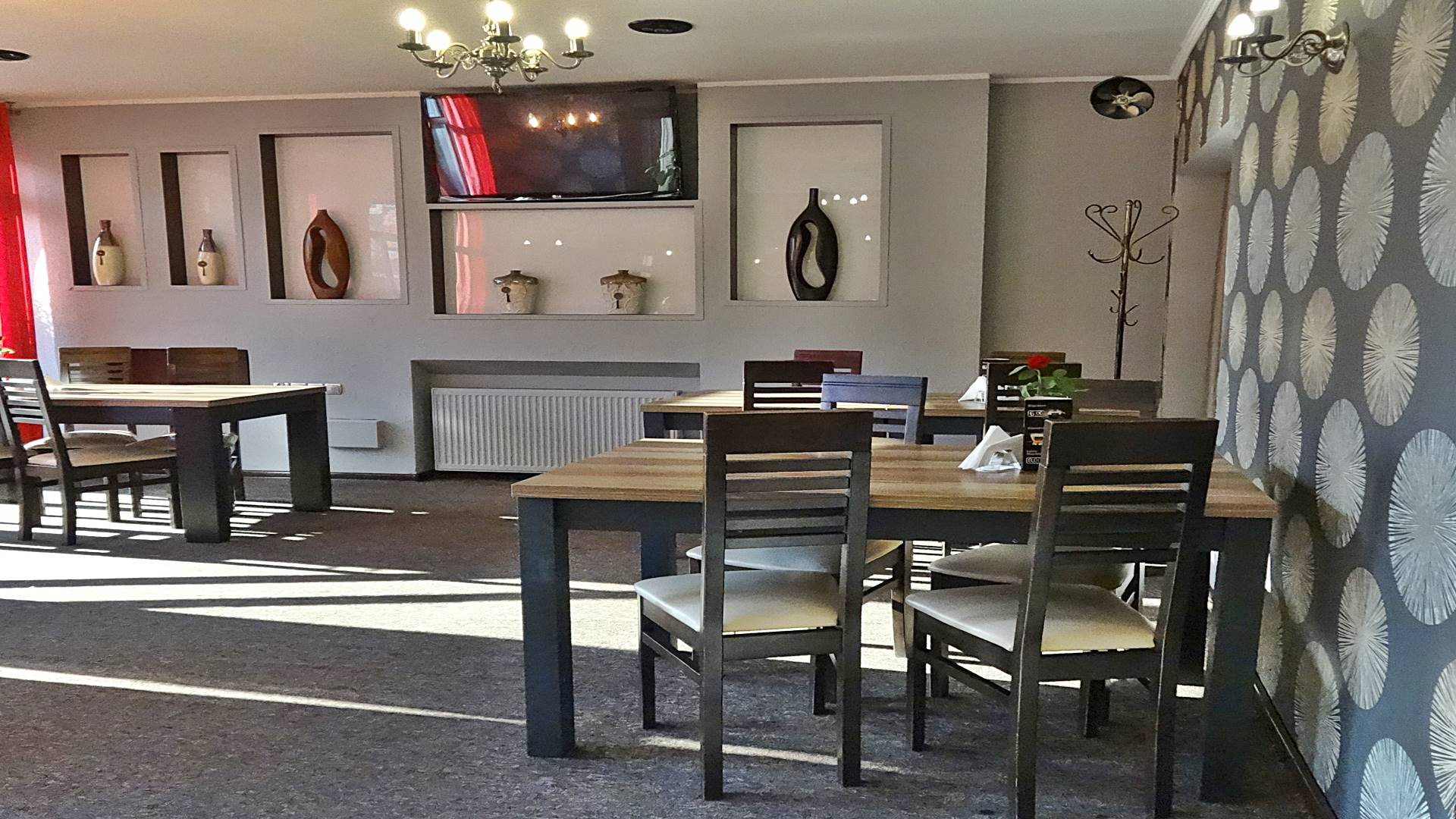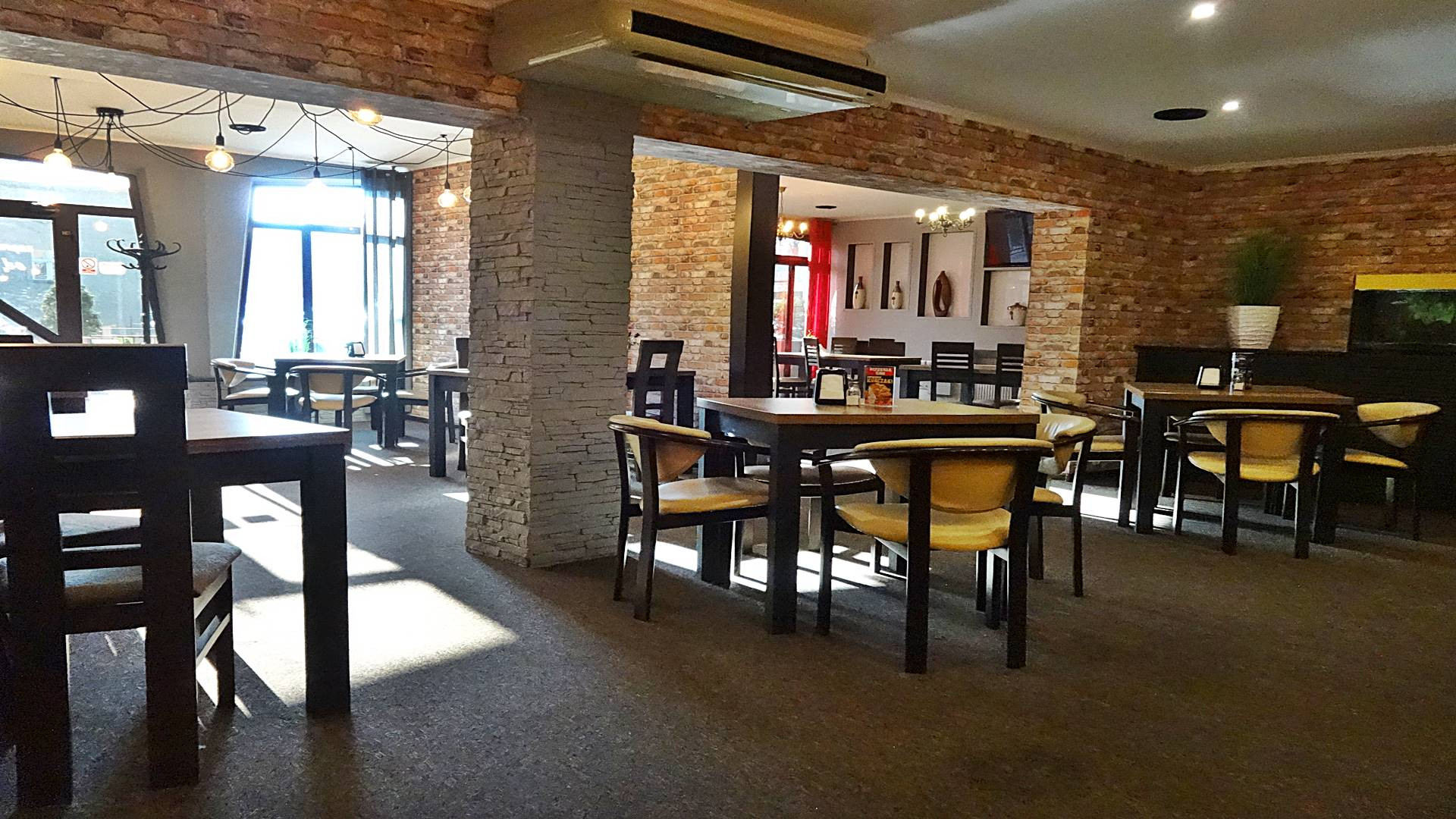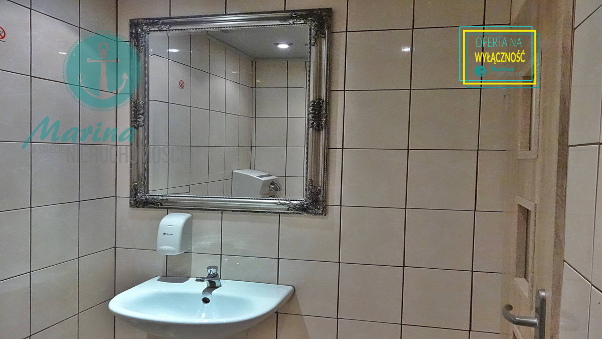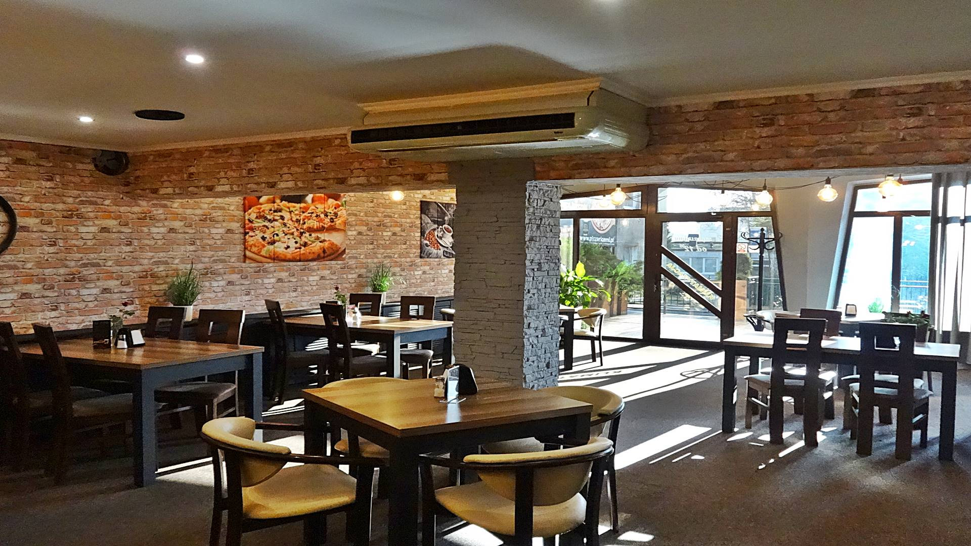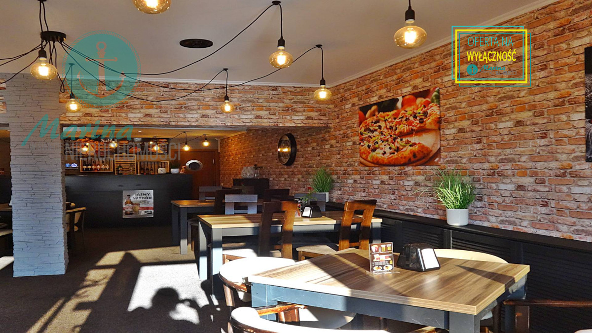 klimatyzowana, wyposażona i działająca restauracja z przeszklonym wejściem bezpośrednio z ulicy, z dużą witryną oraz  z 60-metrowym letnim ogródkiem, mogąca jednocześnie obsłużyć 60-100  gości.