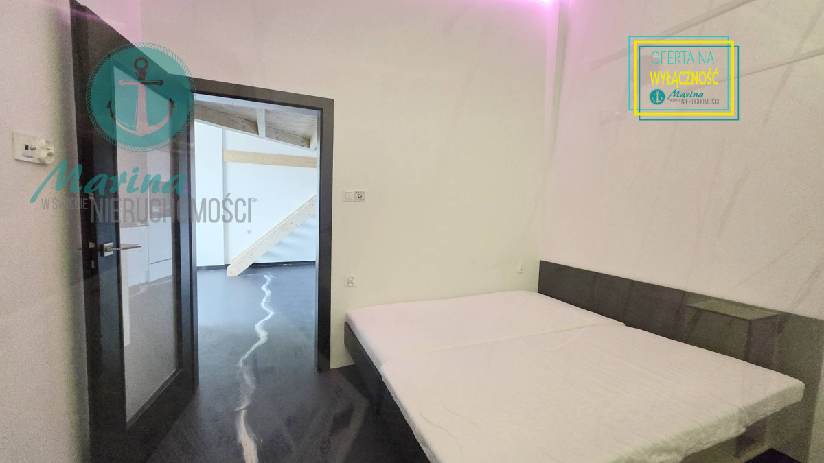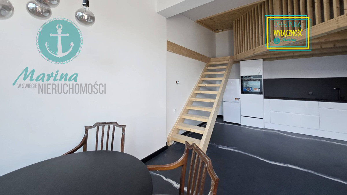 Rozkład pomieszczeń: słoneczny pokój dzienny połączony z otwartą, nową i w pełni wyposażoną kuchnią (płyta grzewcza, lodówka, okap, piekarnik, zmywarka), oraz z antresolą (którą można wykorzystać jako extra sypialnię lub garderobę), sypialnia z nietuzinkowym rozwiązaniem - natryskiem na całą ścianę, łazienką z WC.