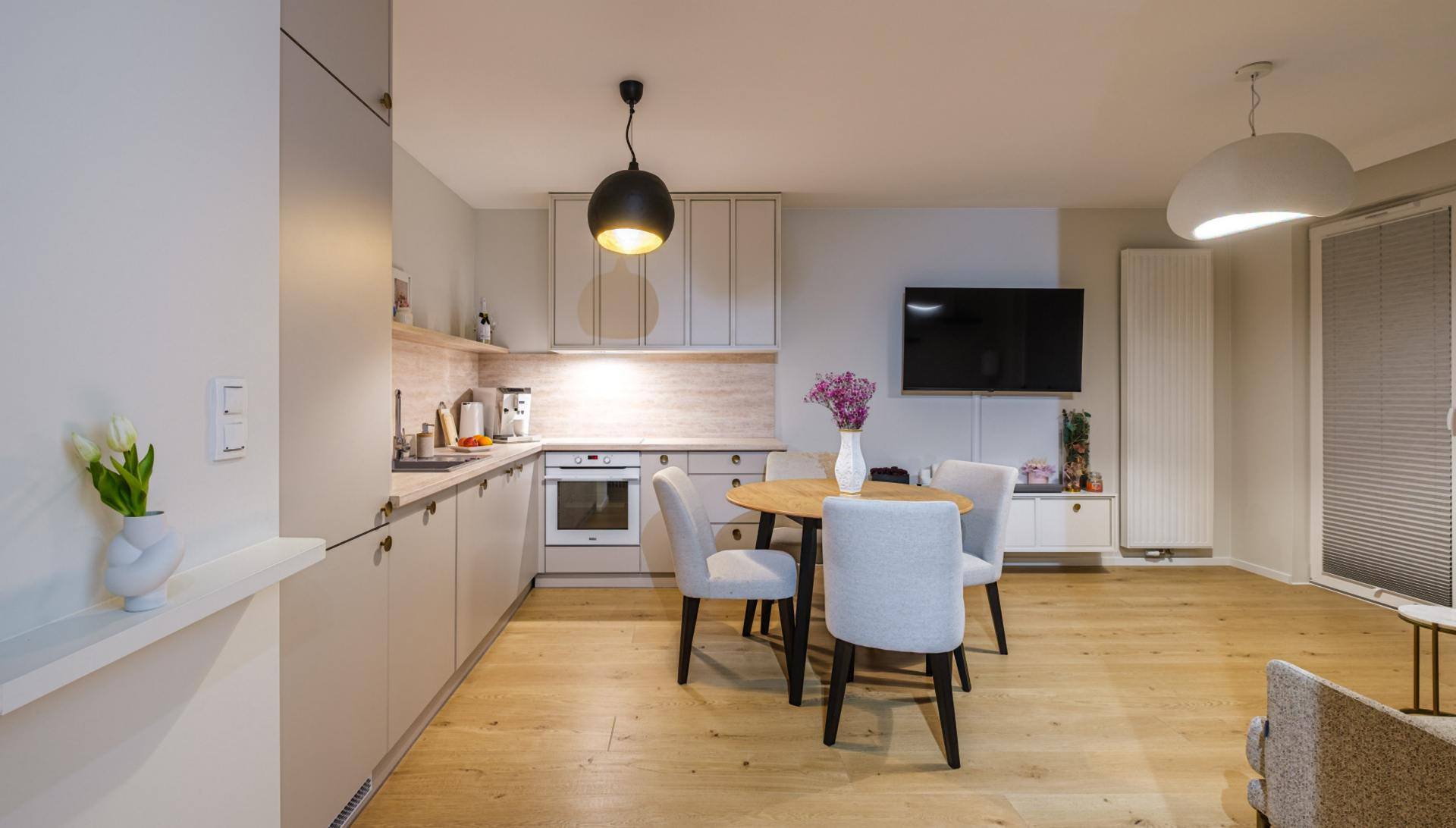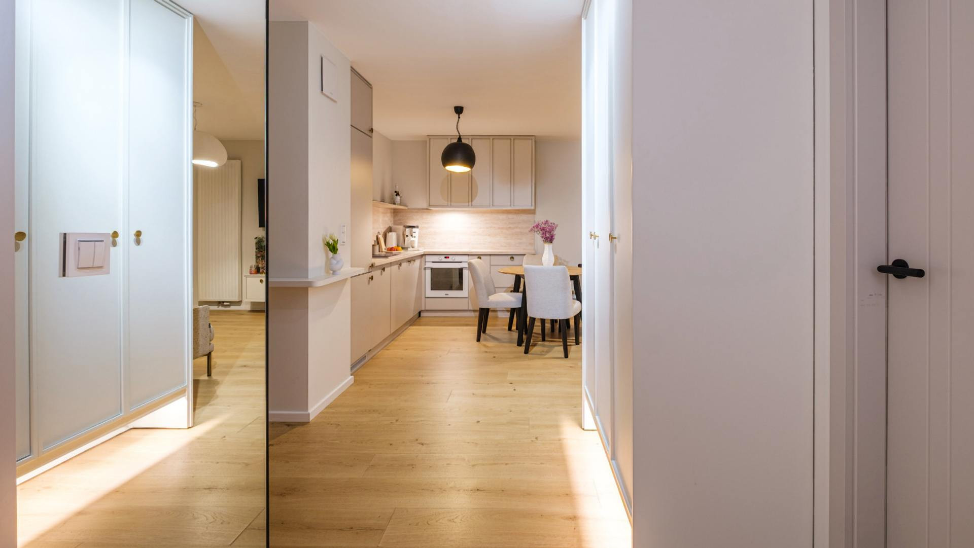 Apartament jest wykończony pod klucz — gotowy do zamieszkania.