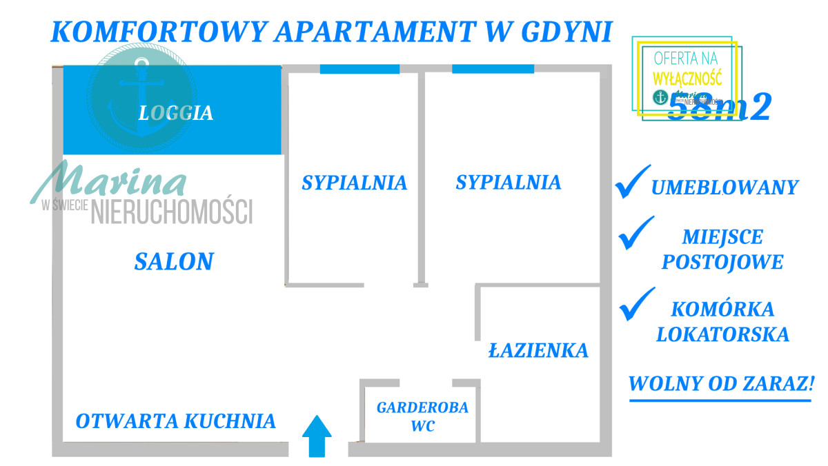Apartament o powierzchni 58m2 położony jest na III piętrze w V-piętrowym komfortowym apartamentowcu z 2025r z windą, podziemną halą garażową, w bezpośrednim sąsiedztwie Trójmiejskiego Parku Krajobrazowego.