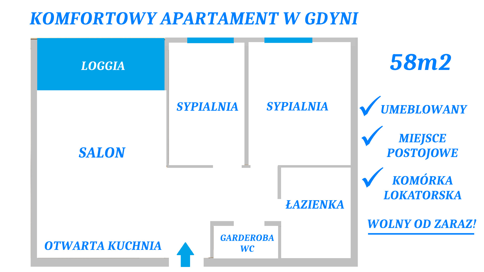 Na sprzedaż nowy, komfortowy, wyposażony i umeblowany 3-pokojowy apartament z dużą loggią, miejscem w hali garażowej i komórką lokatorską.