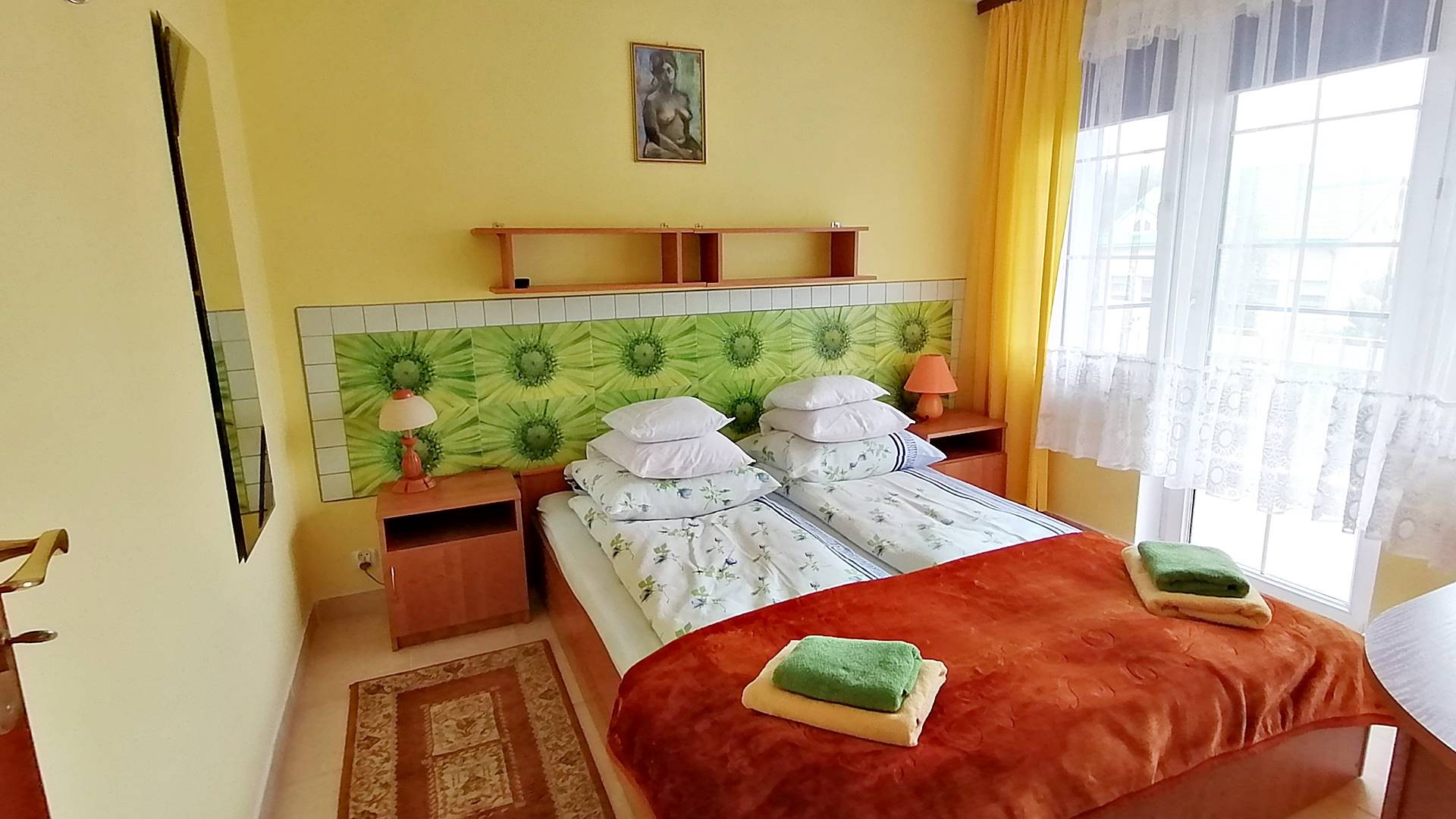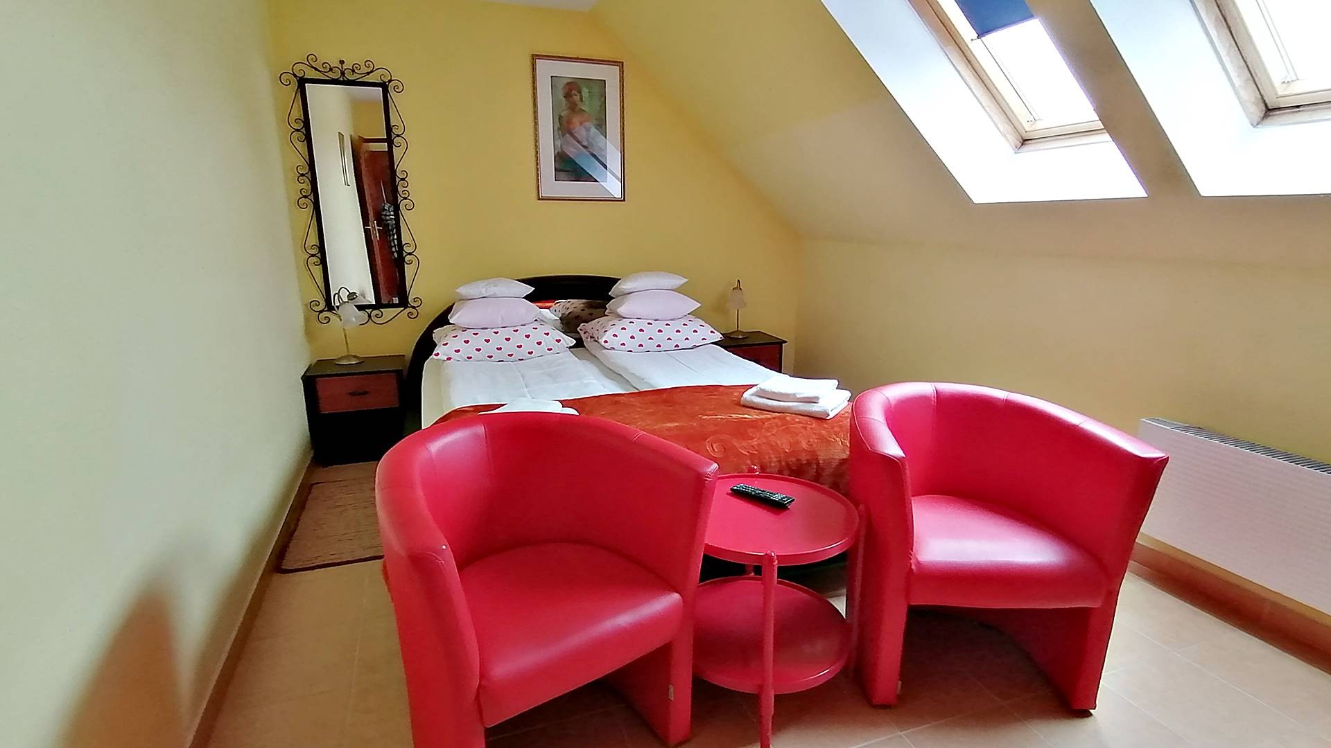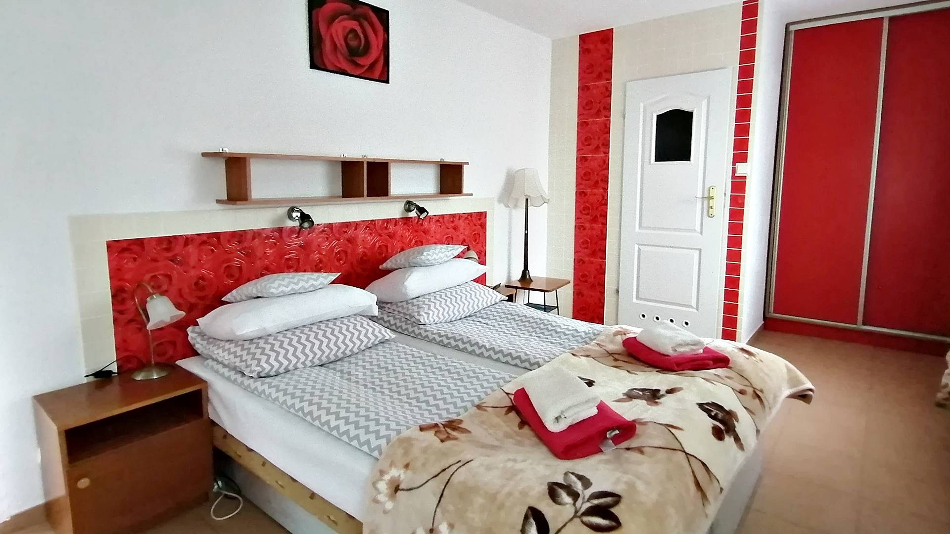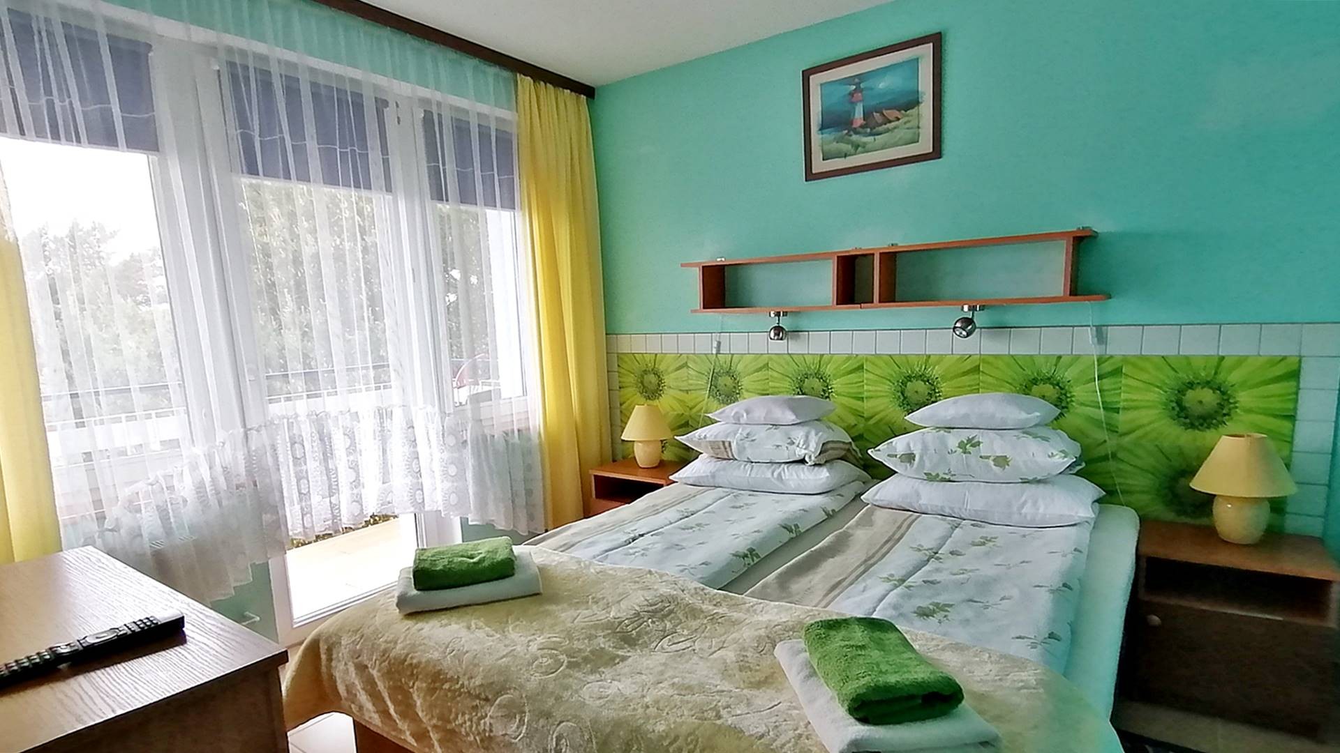 3 pokoje 2-3 osobowe z łazienkami z wejściem bezpośrednio z tarasu, 1 pokój 4-osobowyz łazienką , 7 pokoi 1- osobowych z łazienkami, 1 pokój 2-osobowy z łazienką