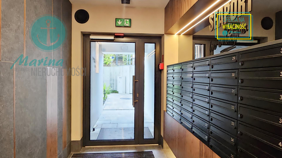 3-pokojowe mieszkanie o powierzchni 61,71m2 znajduje się na parterze w 4-piętrowym nowym apartamentowcu z windą SEAPORT w Gdyni, u zbiegu trzech dzielnic Grabówka, Śródmieścia i Działek Leśnych.